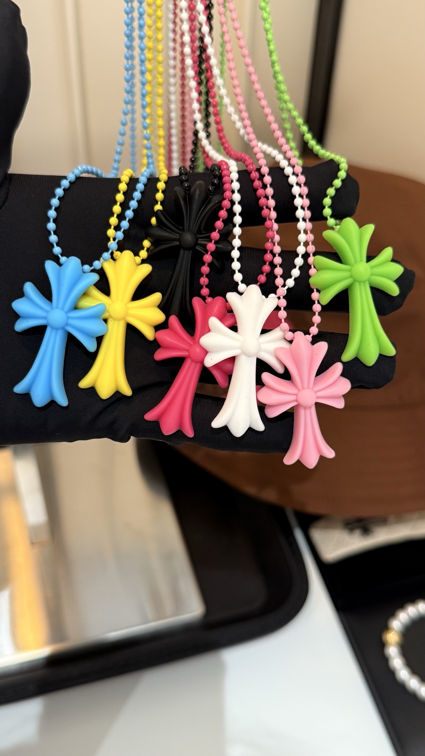 彩色十字架+同色圆珠链条设计 上身吸睛又时髦