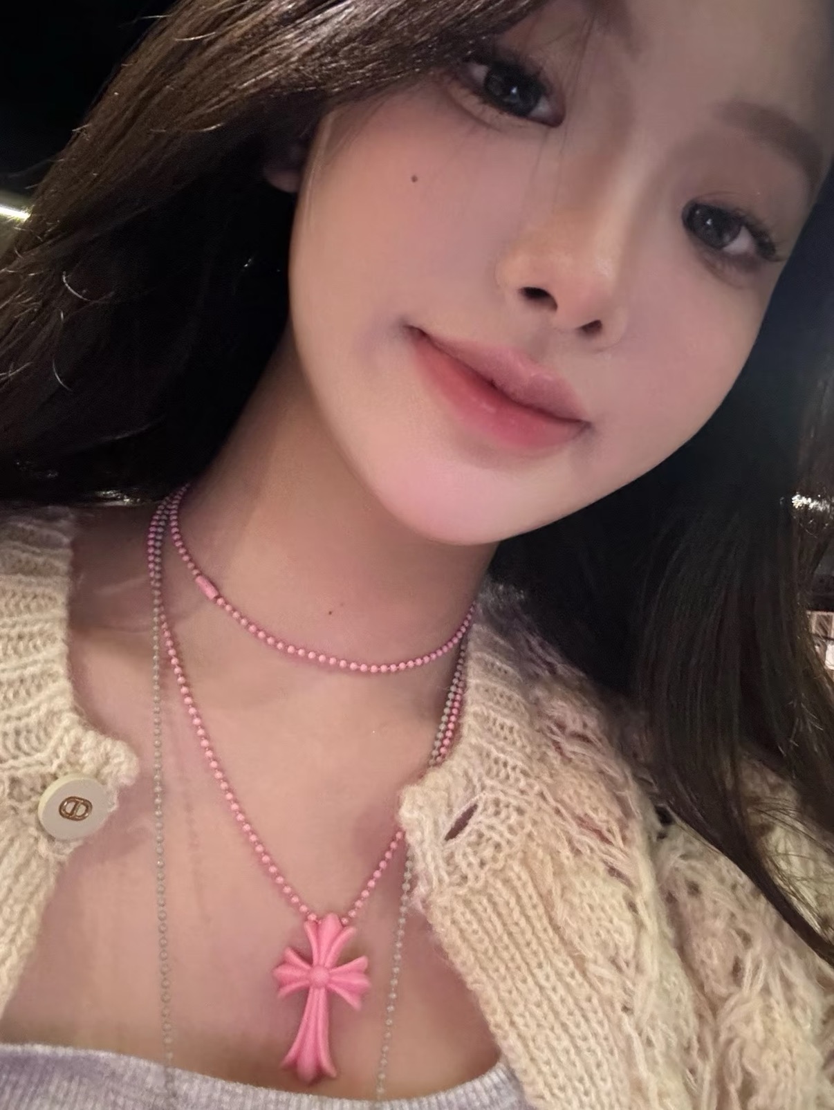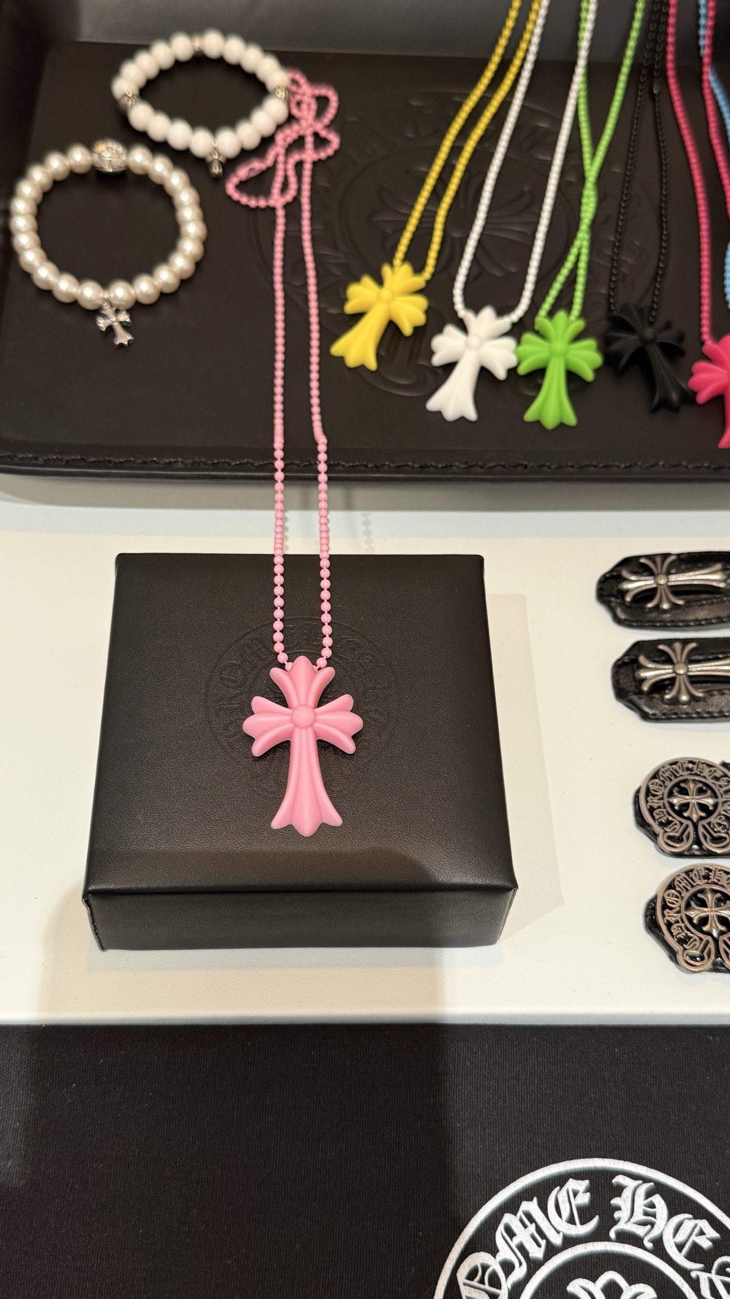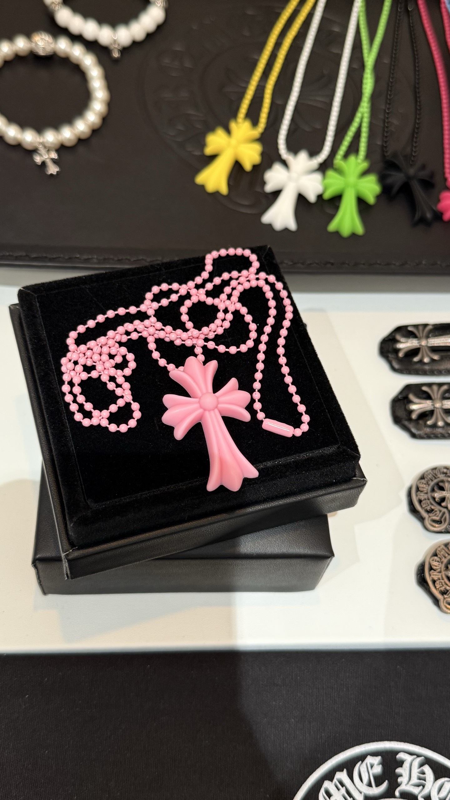 𝐶ℎ𝑟𝑜𝑚𝑒 𝐻𝑒𝑎𝑟𝑡𝑠 克罗心浅粉色树脂十字架梵文字母圆珠项链长链💗