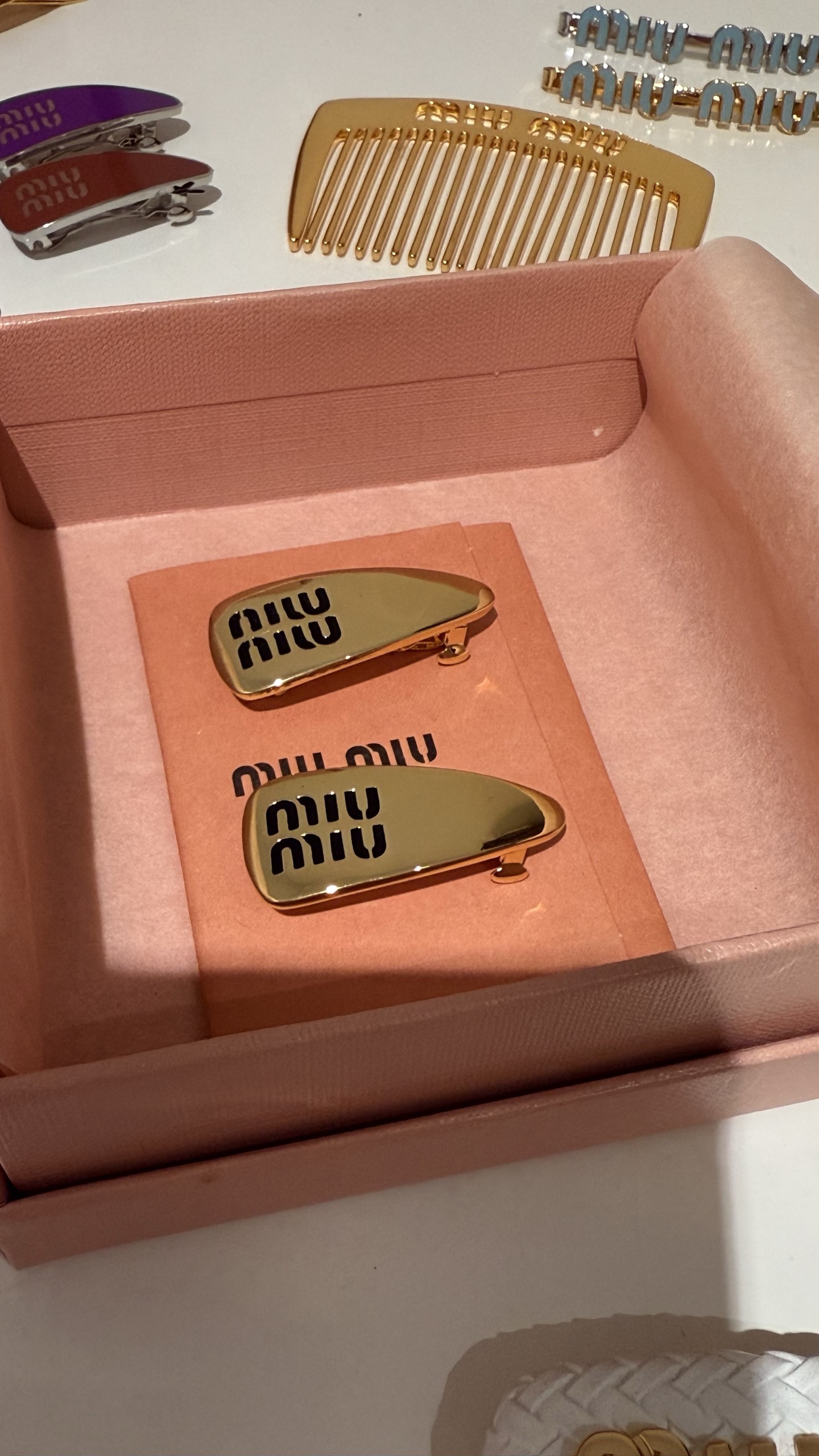 Miumiu 一套两只黑珐琅字母金色金属水滴发夹碎发夹迷你小横夹 实拍图✨
