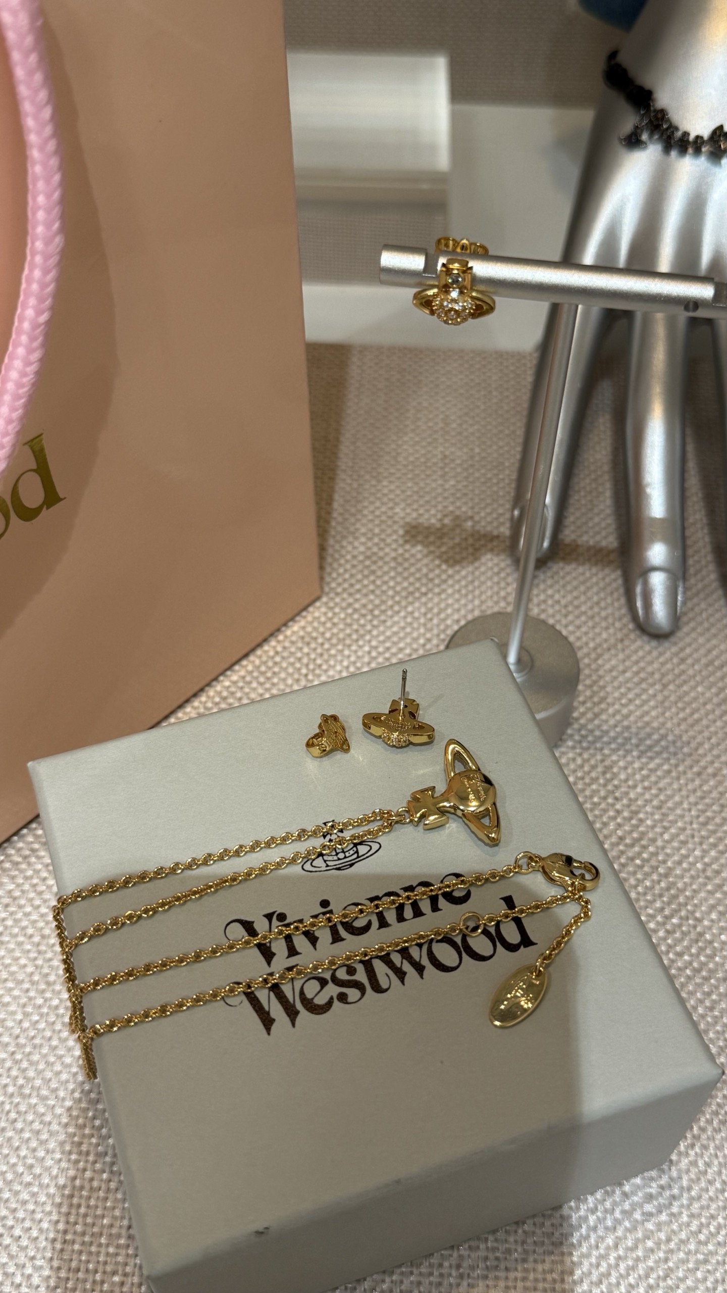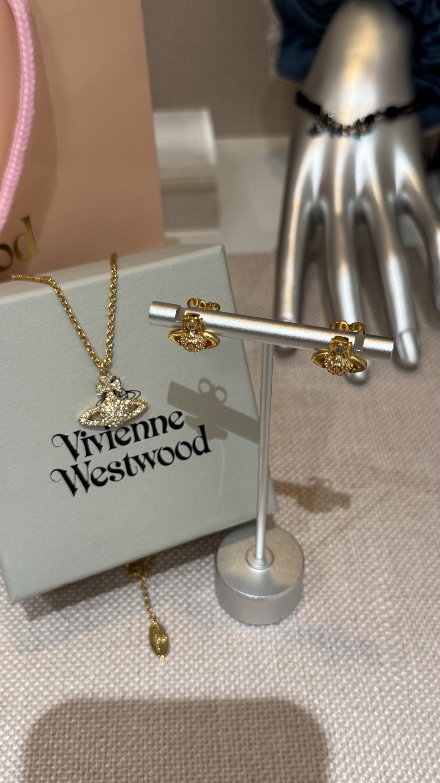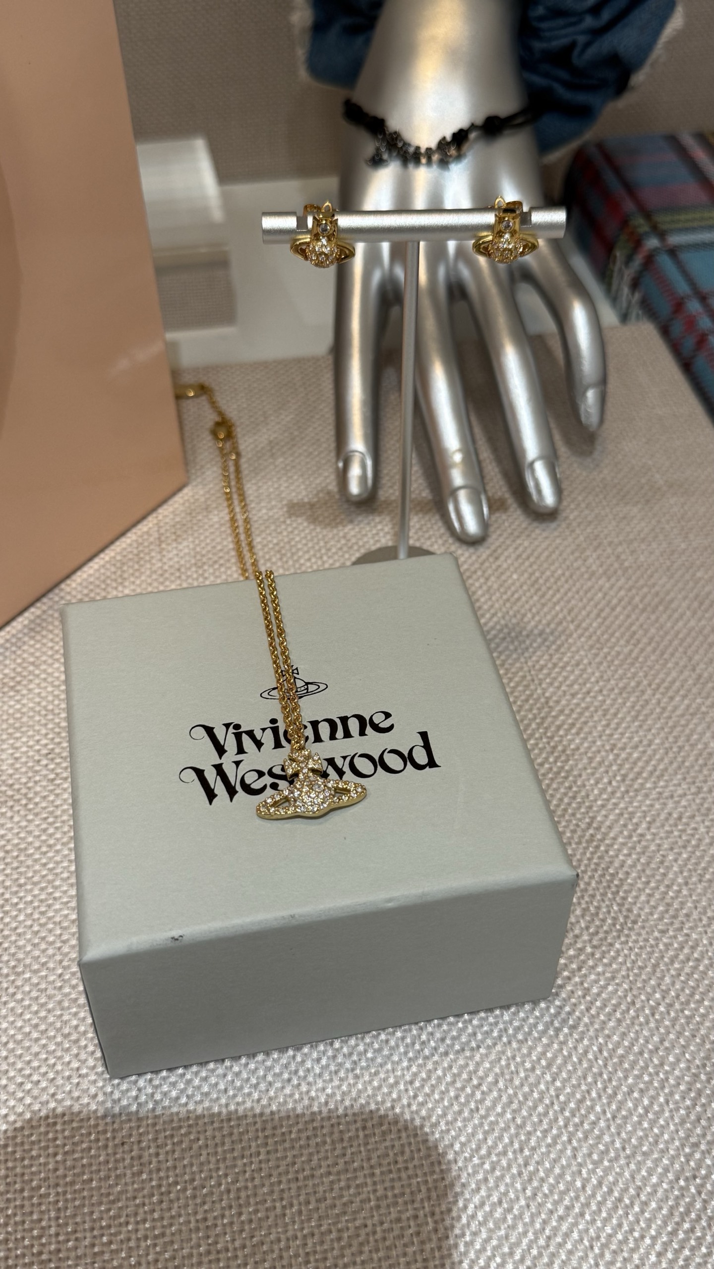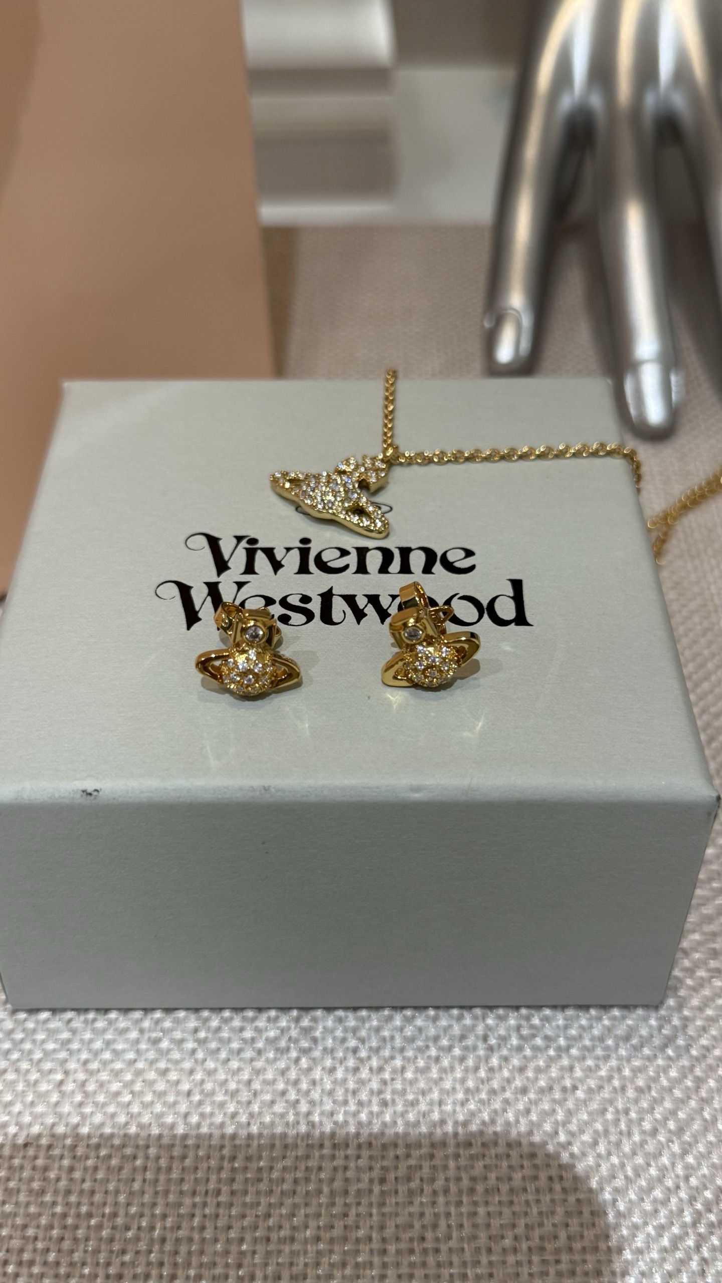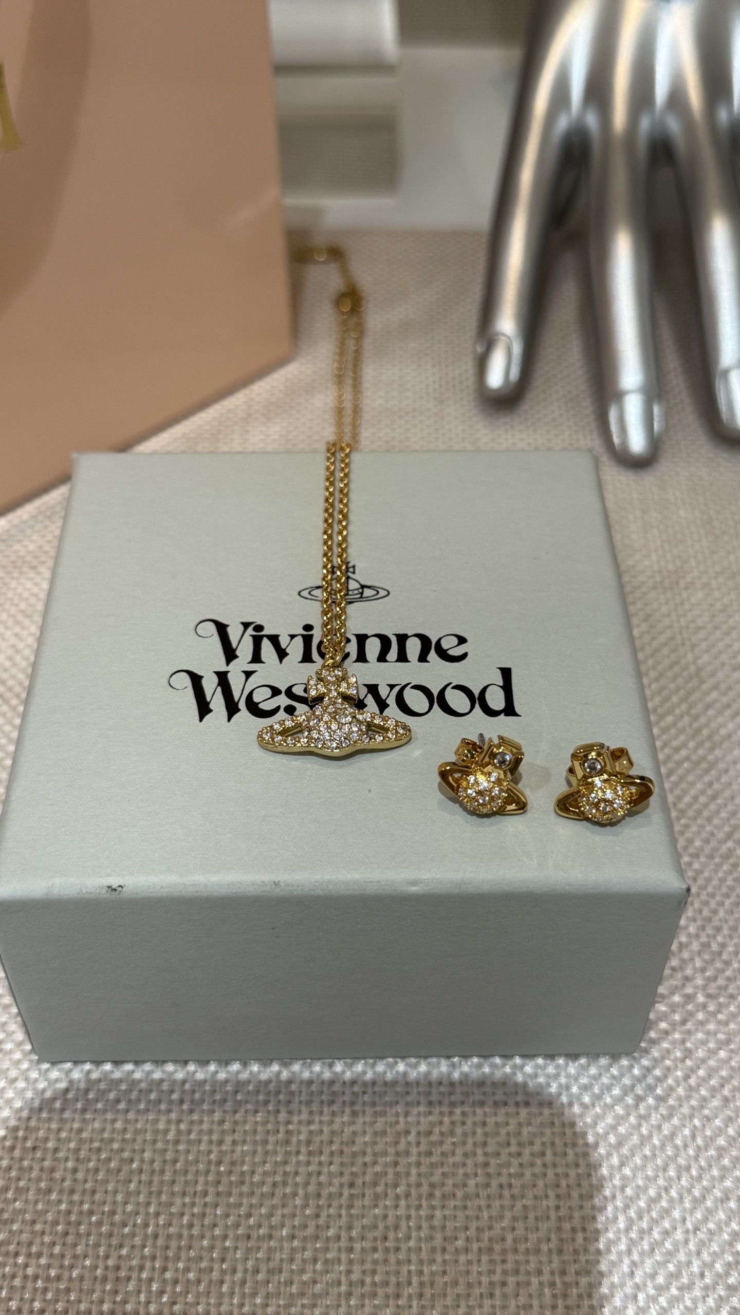 Vivienne Westwood 西太后 金色满钻土星项链 mini半钻耳钉🪐